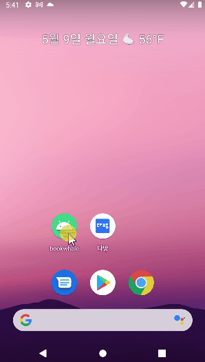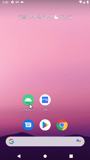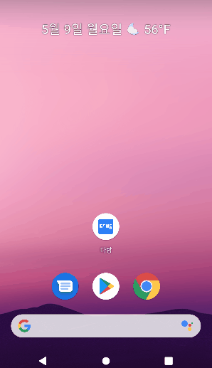 Splash 화면이 없을 때의 앱 실행 모습을 보자.
